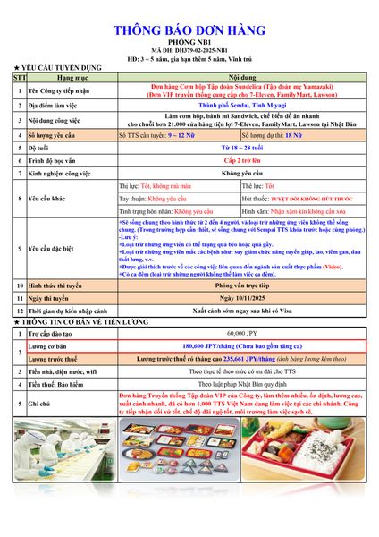 ĐƠN HÀNG MỚI CẦN 18 NỮ CƠM HỘP VIP thi tuyển ngày 10/11/2025