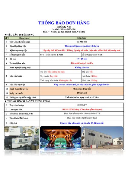 ĐƠN HÀNG MỚI CẦN 5 NAM LẮP RÁP LINH KIỆN CƠ KHÍ thi tuyển ngày 27/11/2025
