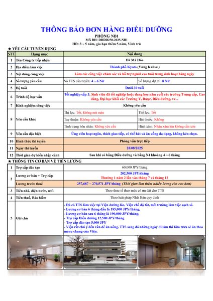 ĐƠN HÀNG MỚI CẦN 8 NỮ ĐIỀU DƯỠNG thi tuyển ngày 28/08/2025
